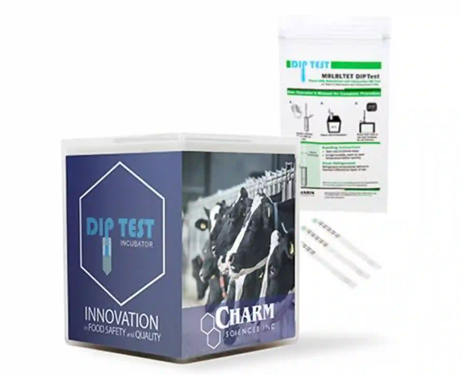 Le DIP test Charm permet de détecter les bêta-lactames et tétracyclines présentes dans le lait cru mélangé. Le test se réalise en une seule étape. La bandelette est simplement à immerger dans l’échantillon et la lecture se fait visuellement après 10 minutes d’incubation.